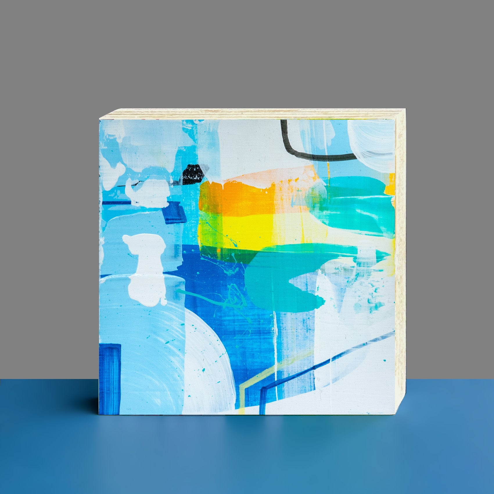Kleines abstraktes Gemälde zum Aufstellen oder Aufhängen.