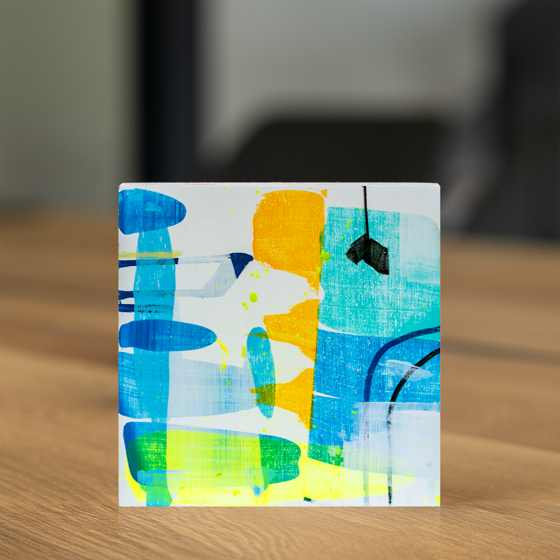 Ob als Blickfang im Wohnzimmer, inspirierender Akzent im Büro oder originelles Geschenk zum Geburtstag, Einzug oder Jubiläum – dieses Mini-Gemälde bringt moderne Kunst in kompakter Form in jeden Raum. Jedes Gemälde ist ein Unikat – es gibt keine Drucke oder Reproduktionen. Die starke Farbwirkung und die vielseitige Komposition machen dieses kleine Kunstwerk zu einem stilvollen Akzent in modernen Wohnräumen, Büros oder Ateliers.