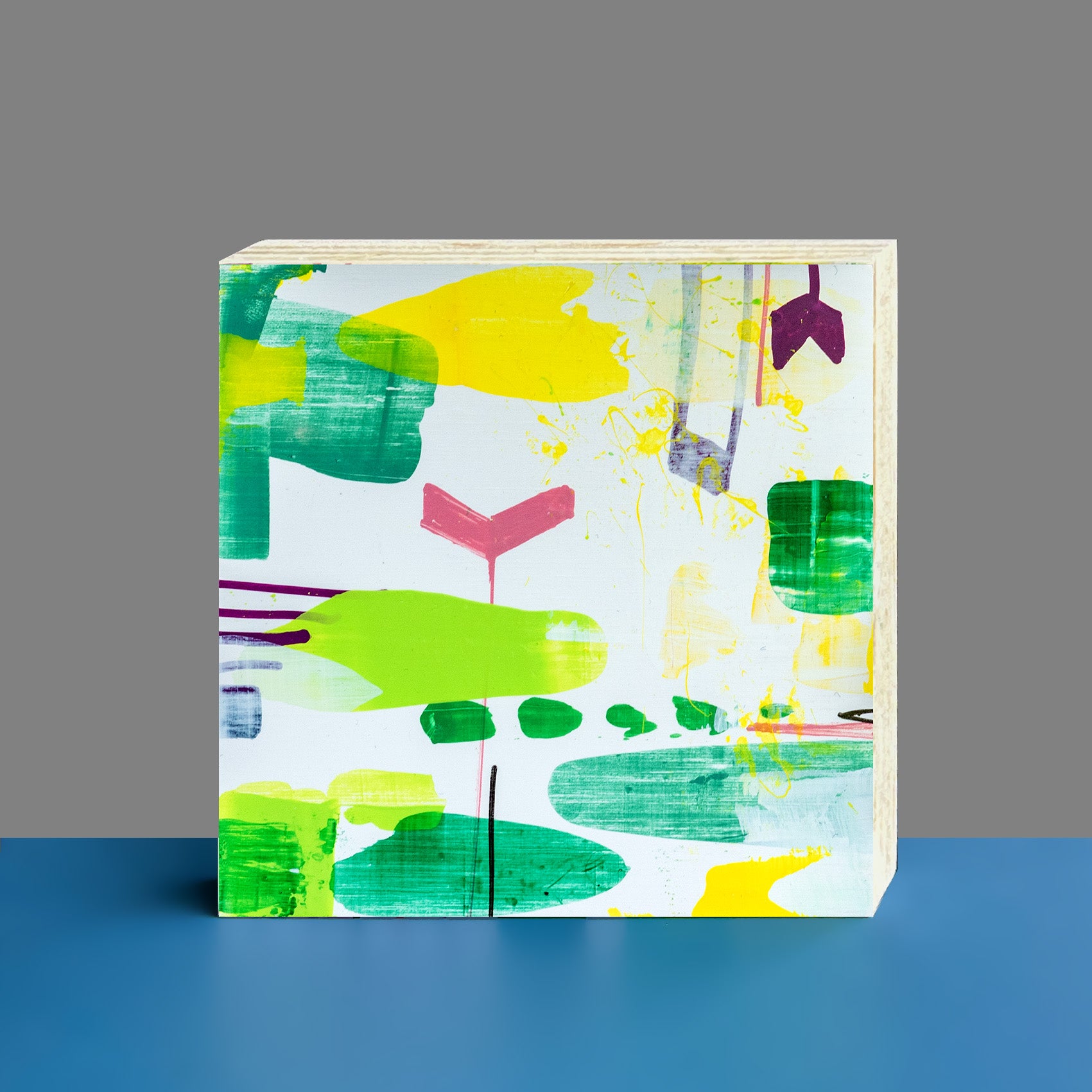 Kleines abstraktes Gemälde zum Aufstellen oder Aufhängen.